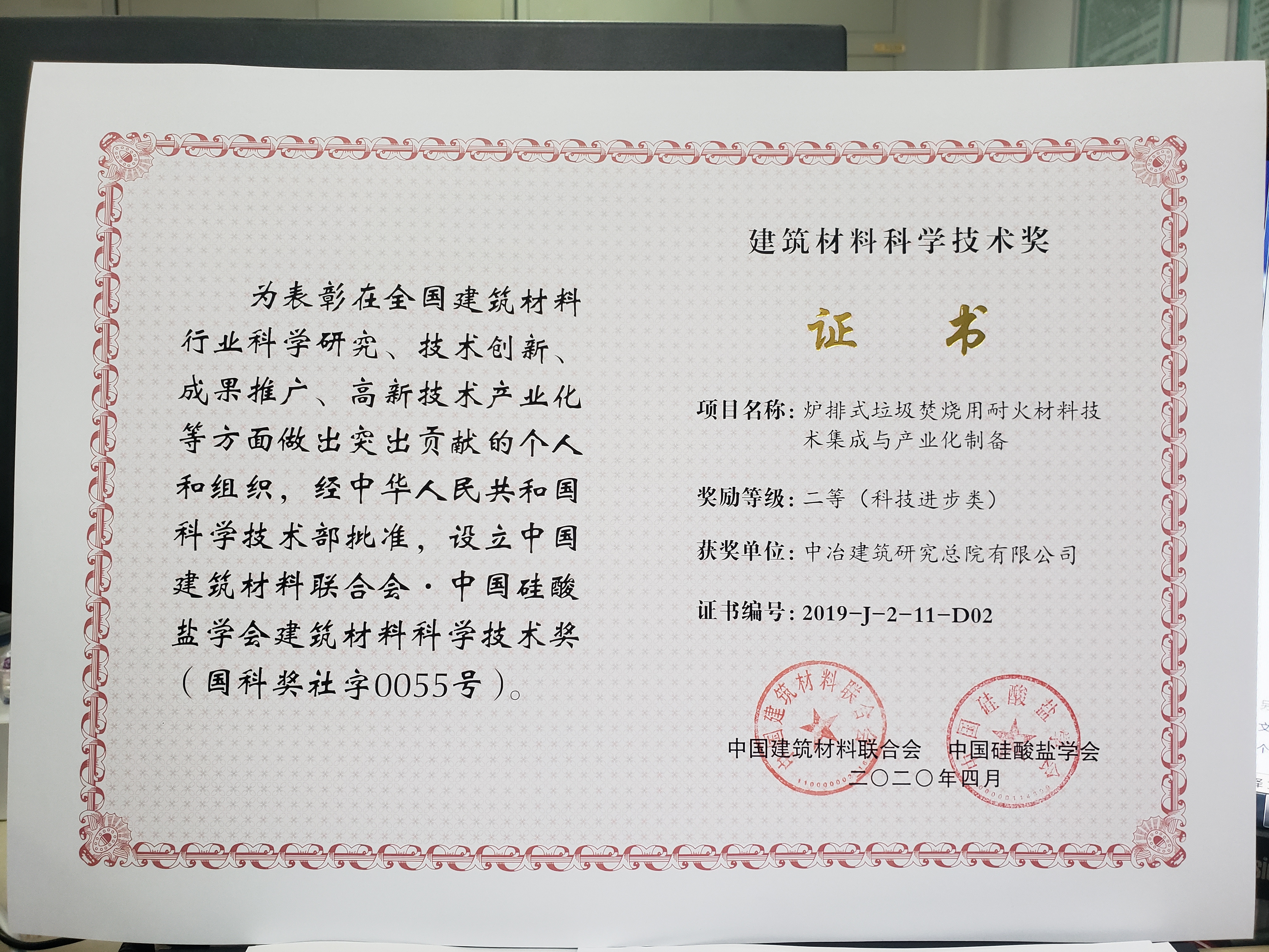 2019年建筑材料科技进步二等奖