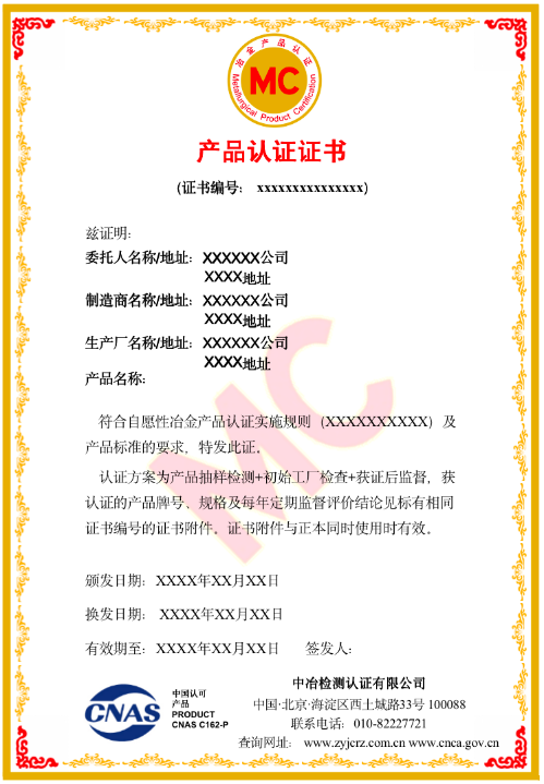 产品认证证书模板