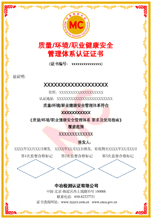 体系认证证书模板